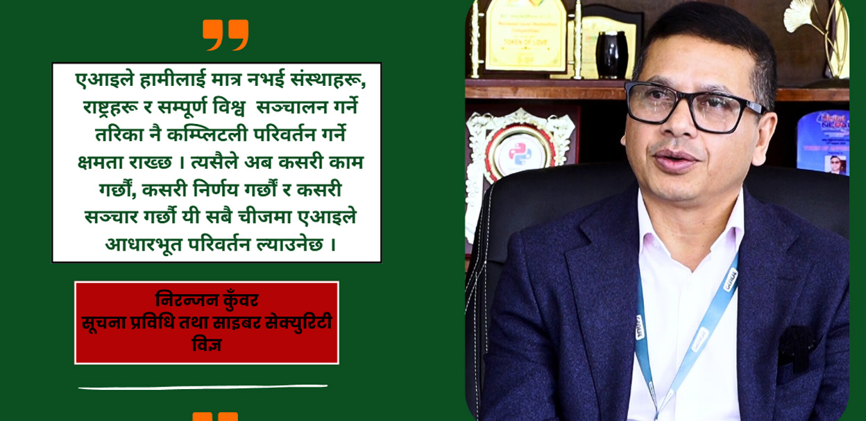 तर हामीसँग नेपालमै आवश्यक ट्यालेन्ट र विशेषज्ञता आंशिक रूपमा उपलब्ध छन । हामी यसलाई मात्र प्रयोग गर्ने होइन, यसमा पायोनियर बन्न सक्ने स्थिति पनि राख्छौं । आज एआईसँग सम्बन्धित प्रविधिहरू युएस, सिलिकन भ्याली वा अन्य विकसित केन्द्रहरूमा उपलब्ध छन् भने हामी काठमाडौं, पोखरा र अन्य शहरहरूबाट नै यसमा पहुँच राख्न सक्छौं ।