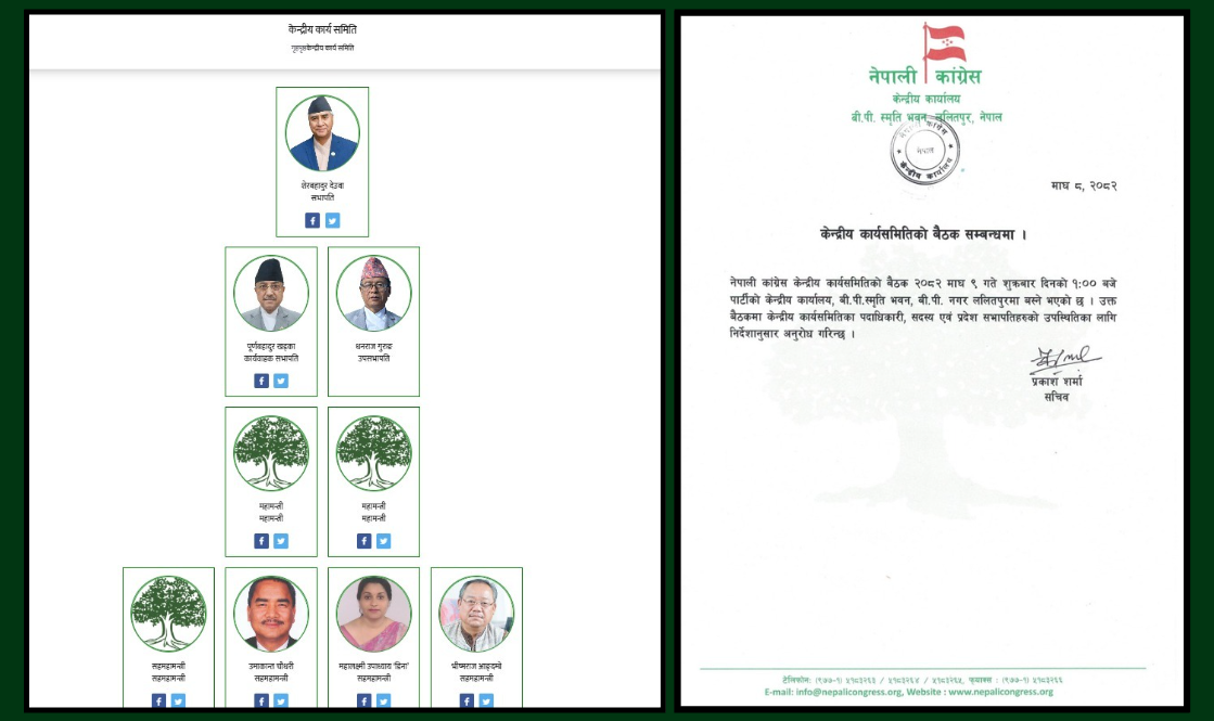 शुक्रबार बस्ने केन्द्रीय कार्यसमितिको बैठकसम्बन्धी आधिकारिक सूचना कांग्रेसकै फेसबुक पेजबाट सार्वजनिक भएपछि सामाजिक सञ्जालको नियन्त्रणसमेत नेतृत्व परिवर्तनसँगै सरेको संकेत देखिएको छ ।