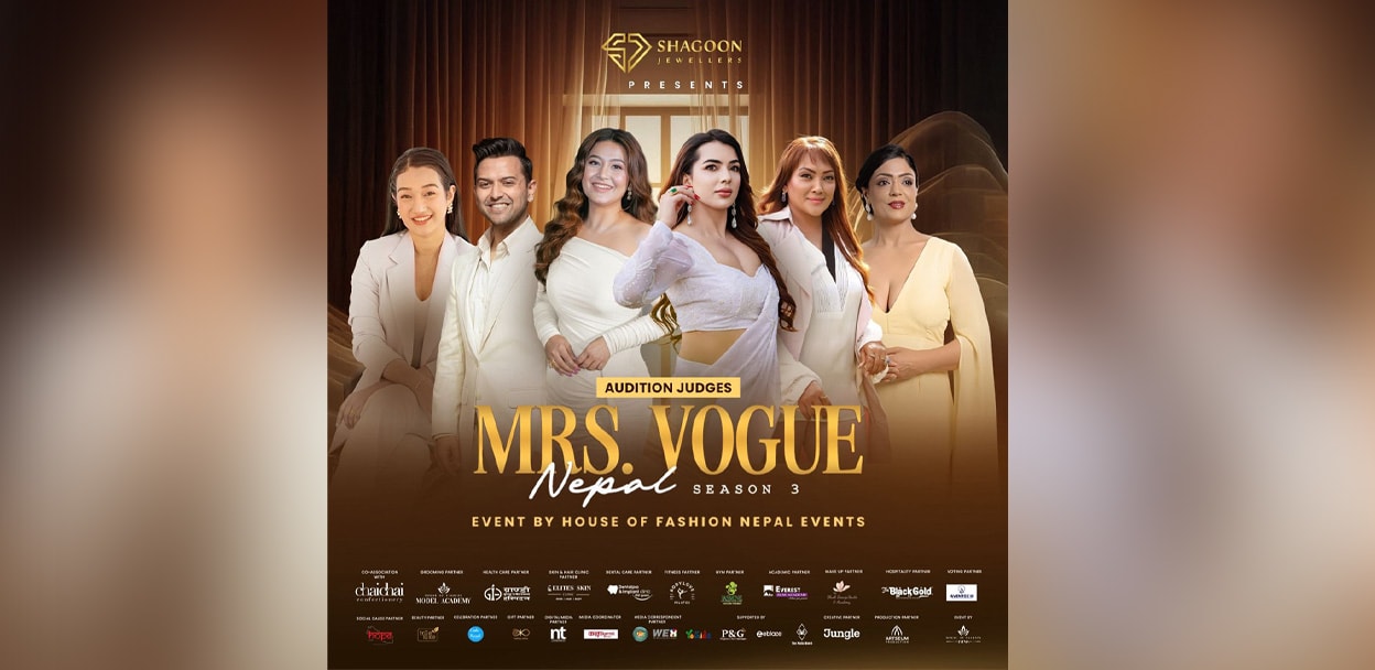 काठमाडौं । हाउस अफ फेसन नेपालको बहुप्रतिक्षित प्रतियोगिता ‘सगून ज्वेलर्स प्रेजेन्ट्स मिसेस भोग नेपाल–२०२५’को भोलि पुस १२ गते शनिवार काठमाडौंमा अडिसन कार्यक्रम आयोजना गरिँदैछ ।